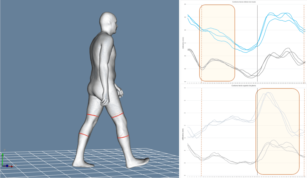 Below are the results related to leg and thigh perimeters during the gait cycle: