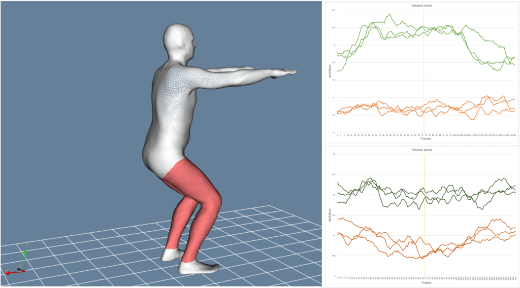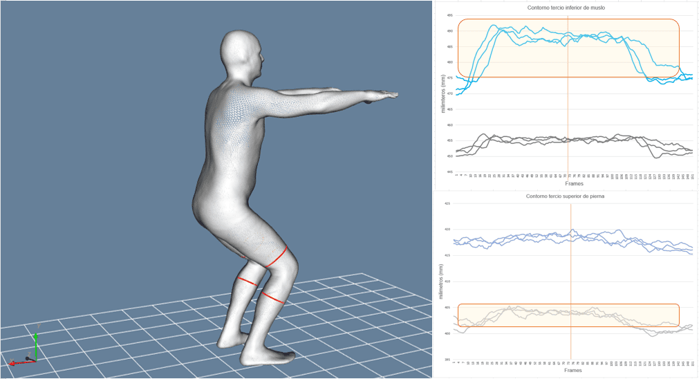 4. Measurement of dynamic circumferences and volumes during the semi-squat gesture.